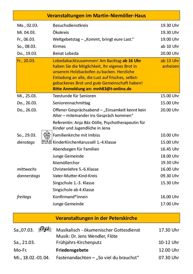 | Gemeindehaus "Martin Niemöller" | ☎ 03641-697120 | |