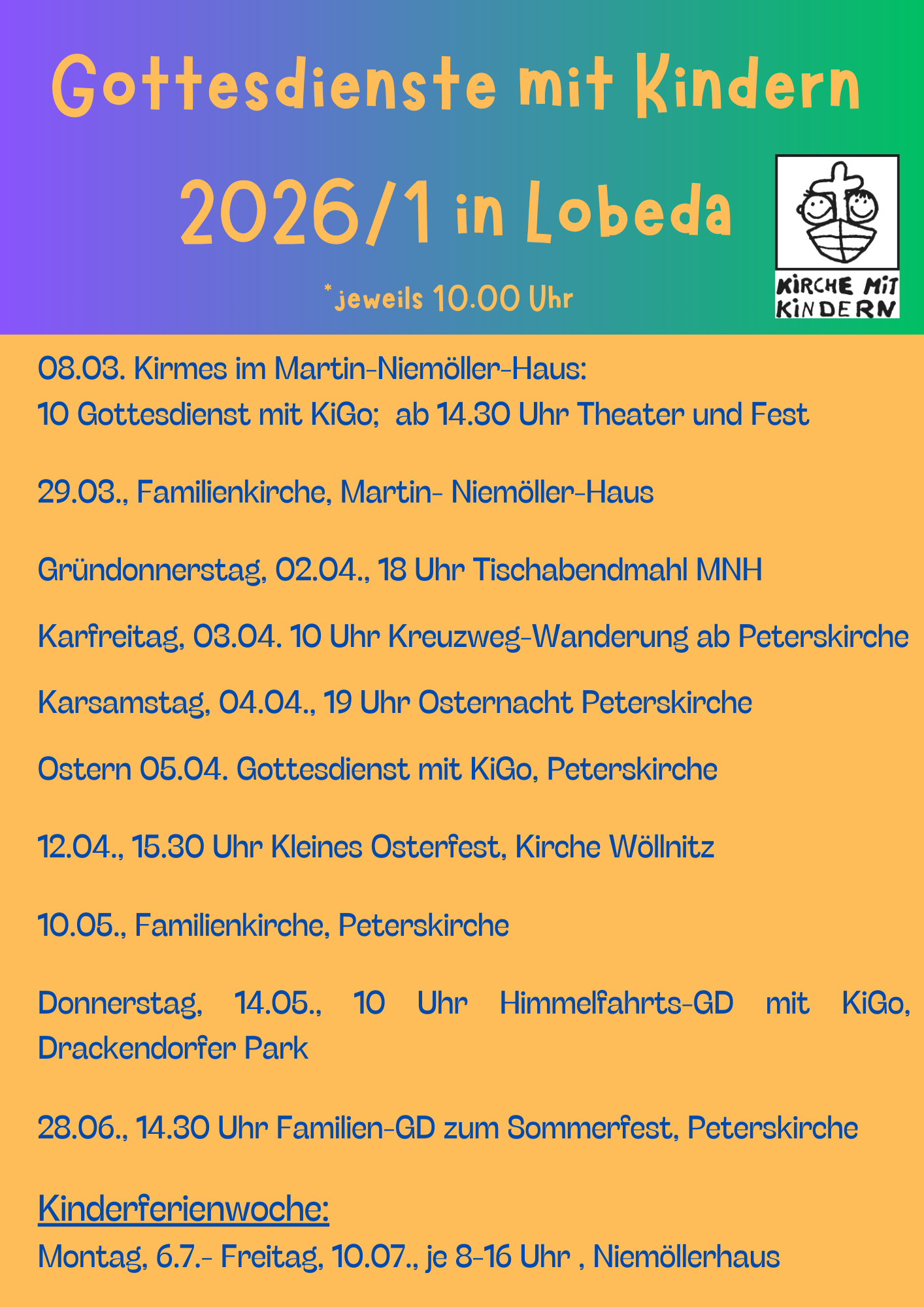 Gottesdienste für und mit Kindern – 2026/1.Halbjahr – KGV Lobeda