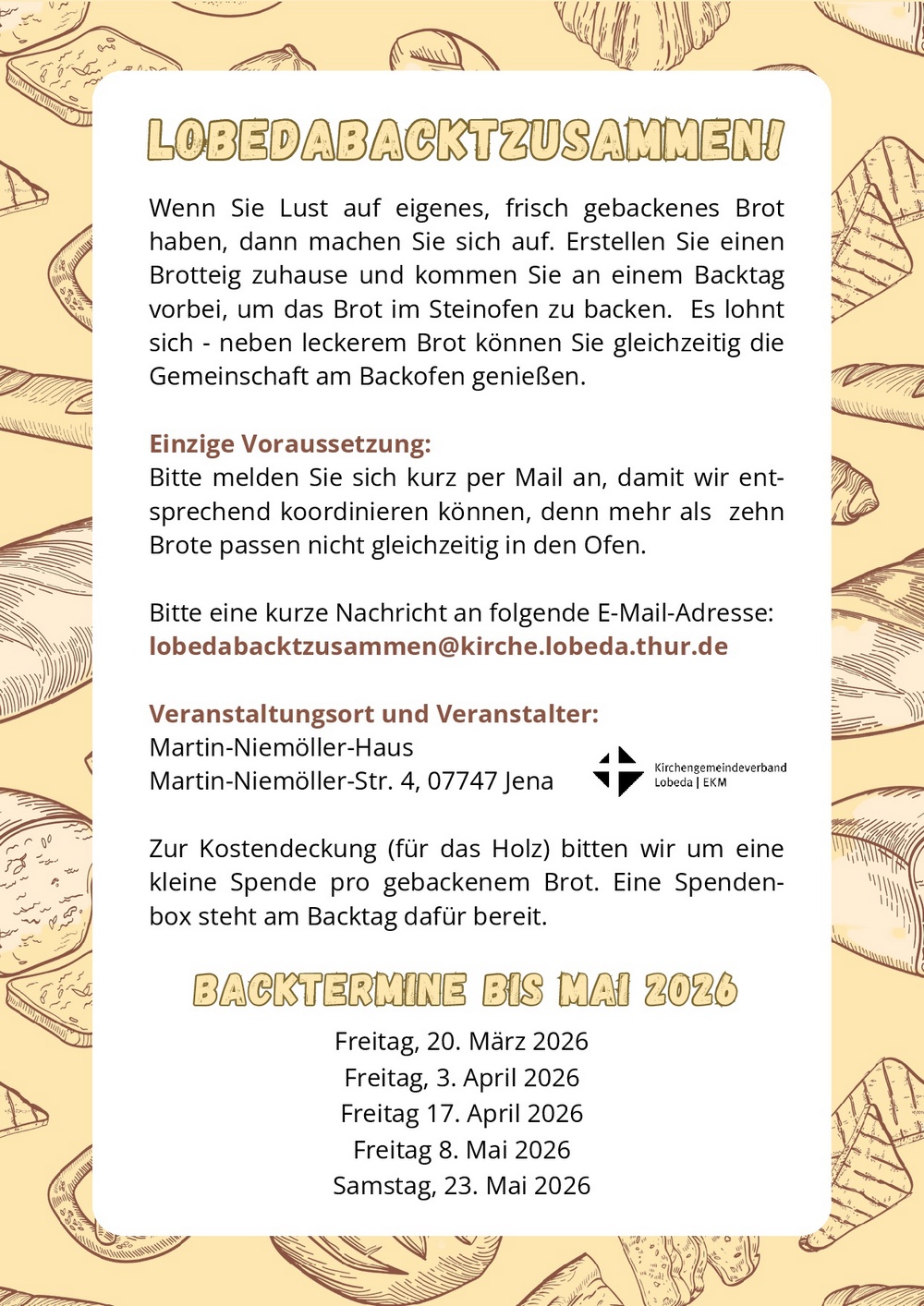 Dieser Beitrag wurde vor am Montag, 9. März 2026 um 15:36 Uhr veröffentlicht und unter Aktuelles, Backteam, Veranstaltungen gespeichert. Sie können Kommentare zu diesem Eintrag über den RSS-2.0-Feed verfolgen. Sie können einen Kommentar hinterlassen, Pingbacks/Trackbacks sind momentan deaktiviert.