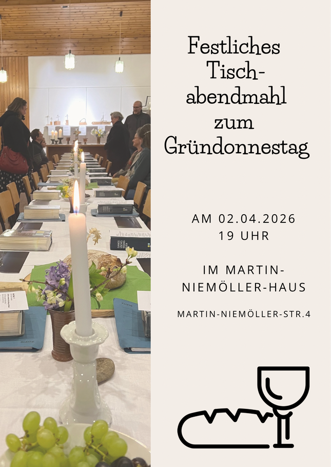 Ralf Krieg schrieb am Mittwoch, 18. März 2026Festliches Tischabendmahl – 02.04.26 – Gründonnerstag im MNH
